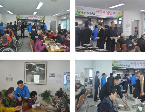이날의 행사는 사단법인 천년미래포럼(김은호 이사장) 및 한국원자력환경공단(이종인 이사장)의 후원으로 진행되었으며, 회원인 한국원자력환경공단 이종인 이사장, (주)다스 김진 부사장이 복지관을 방문하여 직접 자원봉사자로 참여하여 따뜻한 사랑이 담긴 육개장 300여 그릇을 대접하고 이용자와 함께 식사하는 시간을 가졌다. 봉사활동을 위해 복지관을 찾은 김은호 천년미래포럼 이사장은 복지관 이용자분들과 지역주민들과 따뜻한 점심을 함께 할 수 있어 행복하다고 전했으며, 이번 봉사활동을 계기로 무료급식 뿐만 아니라 지속적으로 지역에 나눔의 손길이 필요한 곳을 찾아 사회공헌활동을 실천하겠다며 장애인복지관과 인연을 이어나갈 것을 약속했다.