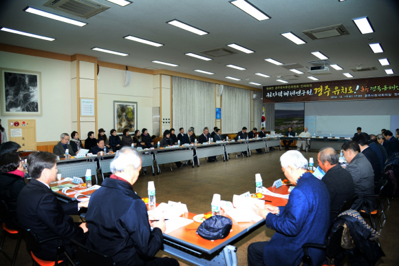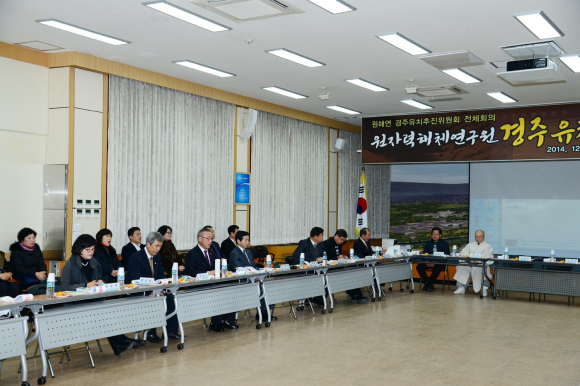 전국적으로 한파 주의보가 내려진 가운데서도 17일(수) 『원해연』 경주유치위원회의 전체회의가 열린 경주시청 대회의실은 원자력해체기술종합연구센터를 경주에 유치하기 위한 시민들의 함성으로 후끈한 열기가 가득했다. 그동안 출범식 이후 경주유치 공감대 확산을 위하여 다양한 추진활동을 전개해 온 유치위원회는 그동안의 활동내용과 성과를 점검하고, 새 해를 맞아 더욱 활발한 유치 활동과 『원해연』 경주유치 각오를 다지고자 이번 회의를 개최하게 되었다. 회의에서는 대외협력분과, 홍보분과, 정책분과팀장의 분과별 활동 내용과 향후 계획에 대한 발표 및 『원해연』 추진에 대한 정부 동향 및 경주시의 과제 등이 발표되었다. 특히 정책분과의 “후보지 적합성 검토와 여건 분석” 발표에 대해 많은 관심이 집중되었다.