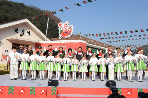 |  | | | ⓒ GBN 경북방송 | | 20일 13시 분천역 앞 광장에서 산타열차 개통 및 산타마을 개장식이 개최되었다.
