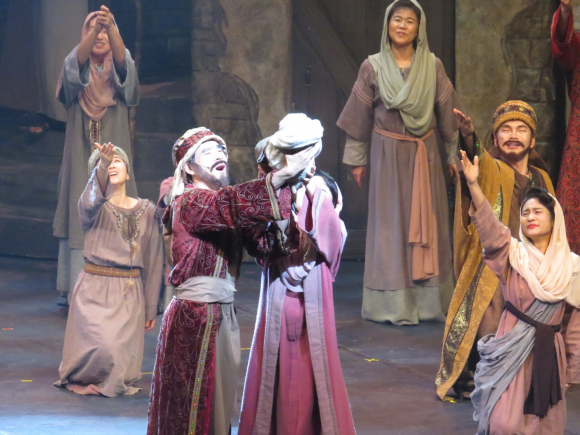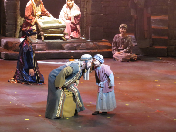 경주시 김남일 부시장, 정두락 경주시 교육장, 이동우경주세계문화엑스포 사무총장, 임진출전국회의원, 박차양문화관광국장, 황명강 ㈜GBN경북방송사장, 박귀룡경주시운영위원, 경주시의회 이진락의원 등 많은 내빈들이 바쁘신 일정가운데에서도 함께 하셨다. 신라공고 선생님들과 학생들이 단체 관람을 했고 관내 장애인분들도 함께 하는 시간을 가졌다. 공연전과 끝난 후에 포토죤에서 가족,친구,연인들끼리 사진을 찍으면서 즐거운 시간을 보내는 분들은 많이 볼 수 있었다. 1막은 예수님의 탄생을 주제를 가장 잘 표현해냈다는 관객들의 반응이 참 많았다. 웅장한 세트에 화려한 조명아래서 펼쳐지는 배우들의 몸동작 목소리는 2000년 전 이스라엘로 관객을 옮겨놓은 듯 했다. 경주에 이런 놀라운 공연이 펼쳐지는 것에 놀라워하는 하고 감격하는 분들이 많았다.