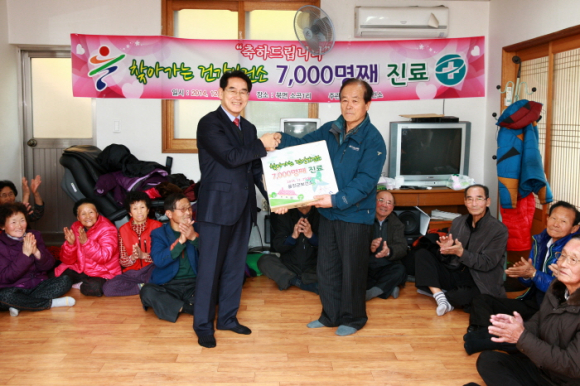 찾아가는 건강보건소 사업은 2013년 4월 발대식을 가지고 근남면 구산리에서 첫 번째 진료를 시작한 후 1년8개월동안 1,000명째 진료는 북면 하당리에서, 2,000명째 진료는 북면 주인2,3리, 3,000명째 진료는 오산2리, 4,000명째 진료는 다천1리에서, 5,000명째 진료는 수곡2리에서 6,000명째 진료는 온양1리, 오늘 소곡1,2리에서7,000명째 진료를 하게 되었다.