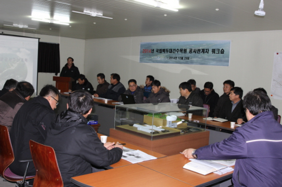 |  | | | ⓒ GBN 경북방송 | | 2014년 12월 29일 오후 2시 백두대간수목원 공사현장 회의실에서 산림청, 조달청, 봉화군, 감리단, 시공사 관계자 등 30명이 참석한 가운데 국립백두대간 수목원 조성공사 관계자 워크숍을 개최되었다. 2014년도 백두대간수목원 조성공사 성과를 돌아보고 2015년 공사계획을 공유하여 계획한 기간 내에 공사를 차질 없이 마무리하기 위하여 마련된 자리이다.