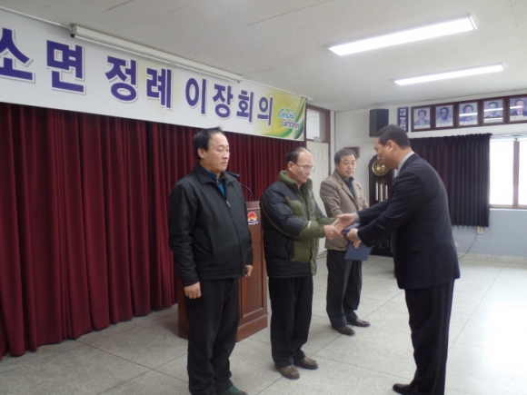 이날 회의에서는 그 동안 마을 화합과 주민들을 위해 봉사하신 퇴임이장에 대한 감사패 전달과 이장으로 선출된 신임 이장들에게 임명장이 전달되었다.