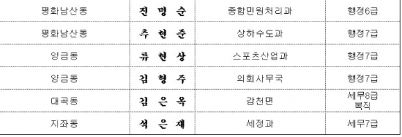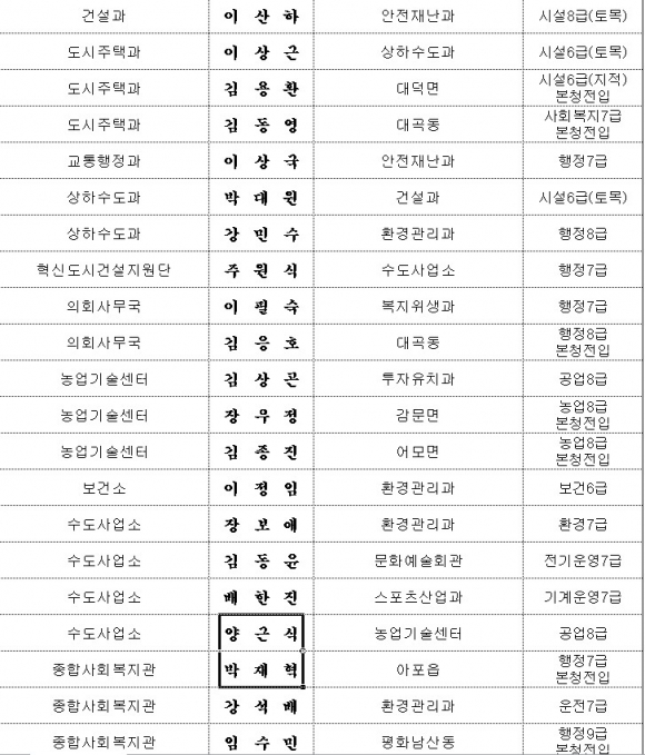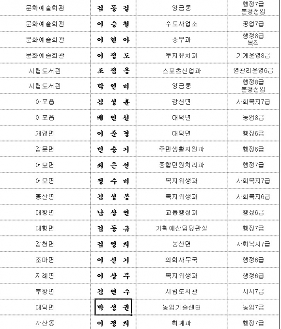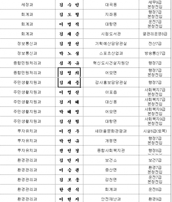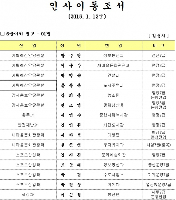 김천시, 인사이동조서 (6급이하)