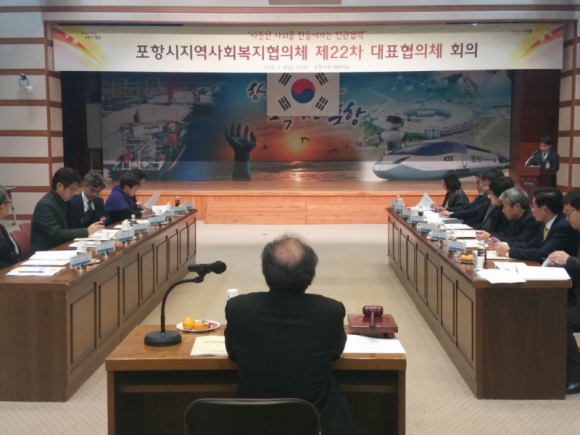 포항시는 9일 시청 대회의실에서 포항시지역사회복지 대표협의체 위원 20여명이 참석한 가운데 제3기 지역사회복지계획 2015년 연차별 시행계획(안)심의를 위한 포항시지역사회복지협의체 대표협의체 회의를 개최했다.