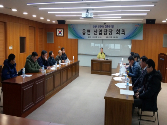 포항시가 13일 시청 소회의실에서 구제역 백신의 신속한 접종 추진을 위해 각 읍면동 산업담당 및 축협관계자가 참석한 가운데 긴급회의를 개최했다. 이날 회의에서 1만두의 소 구제역 백신의 원활한 접종을 위해 시는 백신 배부와 접종실적 집계 등 행정적인 지원을, 축협은 접종인력 지원을 하기로 논의했다.