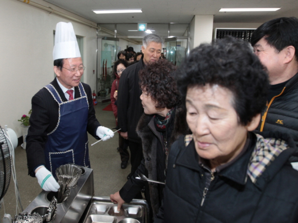 배식봉사에 나선 김완용 이사장을 비롯한 노인복지회관 직원들은 어르신들에게 배식을 하는 동안 식당을 찾은 어르신 한분 한분께 안부를 여쭙고, 건강을 기원하는 마음을 전했다.