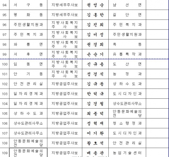 안동시, 2015년도 상반기 직원 인사 단행(2)