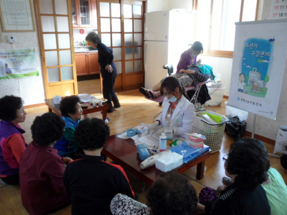 치주질환 발생이 가장 많은 65세 이상 어르신들의 잇몸질환 진행억제를 위해 무료 스케일링을 실시하며 전문가 잇솔질 교육, 시린이 예방을 위한 불소도포도 실시한다.