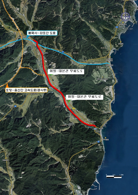양북면 어일-대본 우회도로 21일 개통 주변지역 교통망 확충·동해 관광지 접근성 개선