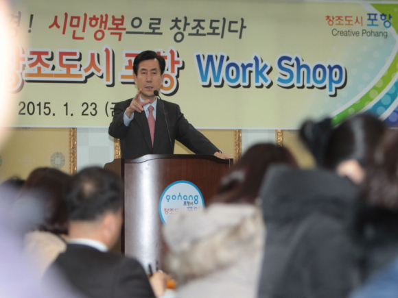 포항시는 2015년을 급변하는 경제 환경을 이해하고 대응할 수 있는 공무원으로서의 역량강화와 창의적인 마인드 제고를 통해 시민과 함께하는 창조도시 포항을 만들어 가기 위해 각 국·소·사업소별로 전 공무원을 대상으로 한 워크숍을 시작했다.