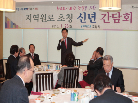 민선6기 출범 이후 소통과 협력행정을 강조해 온 포항시장은 26일 창조도시 건설을 위한 지역원로 초청 신년 간담회를 갖고 시정운영 방향과 지역현안에 대한 고견을 듣는 시간을 가졌다.