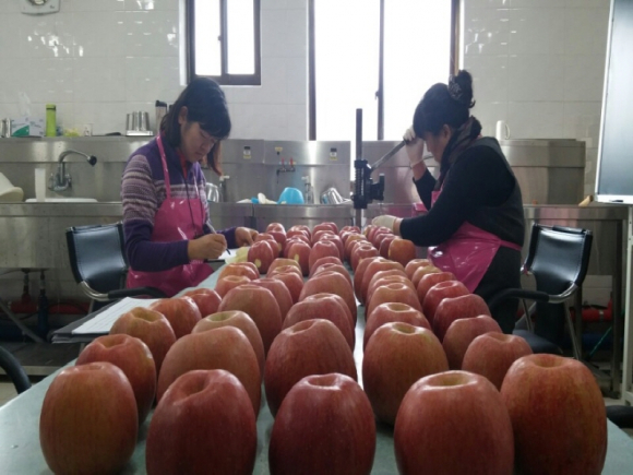 시는 사과수확이 종료된 11월부터 품질검사를 원하는 농가별 약 10개의 사과를 제출 받아 무료로 품질검사를 실시했으며, 검사 결과 사과 탑프루트 규격인 과중 320±10%, 과형지수 0.88~0.92, 당도 14브릭스 이상에 적합했다.