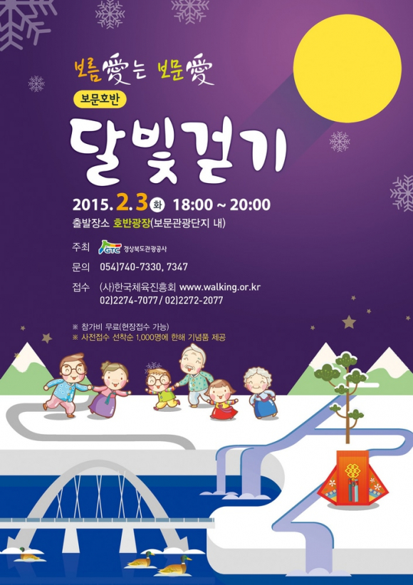 경상북도관광공사(사장 김대유)는 2월 3일(화)에 경주 보문관광단지 일원에서"보름愛는 보문愛"보문호반 달빛걷기 행사를 개최한다.