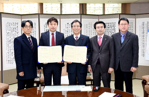 문경시와 ㈜켐벅스는 27일 문경시청에서 고윤환 문경시장, 김철 켐벅스 대표이사 등 관계자들이 참석한 가운데 켐벅스 공장 설립을 위한 투자양해각서 체결했다.