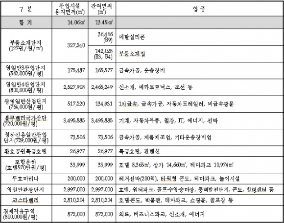시가 수립한 투자유치기본계획의 세부내용을 보면 일본기업 이비덴과 중국기업 HC T&P가 입주해 있는 영일만 일반산단 내 부품소재단지와 오천 광명산업단지의 잔여부지 각각 17만 8,000㎡와 13만 5,000㎡의 투자유치에 집중할 계획이다.