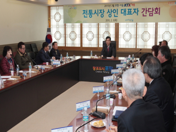 포항시가 5일 시청 중회의실에서 전통시장 상인 대표 15명이 참석한 가운데 전통시장 활성화를 위한 간담회를 개최했다. 이번 간담회는 오는 3월 KTX개통에 따라 포항을 찾는 수도권 관광객의 증가가 예상됨에 따라 전통시장의 활성화와 손님맞이 준비에 대한 의견을 모으기 위해 마련됐다.