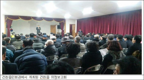 오후 2시 건천읍민회관에서 개최된 의정보고회에서는 2015년 국비 확보 현황를 비롯해, 경주 문화재 복원사업의 추진상황과 원자력 관련 기관의 신규 유치 등 원자력과 관련된 사항과 더불어 도로·철도 등 교통여건 개선 성과 등을 동영상 등을 통해 상세히 설명했다.
