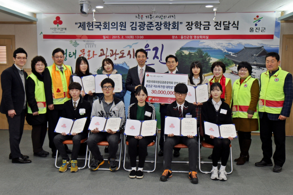 ‘제헌국회의원 김광준장학회’는 지난 2월 10일, 울진군청 영상회의실에서 임광원 울진군수, 김누리 경북사회복지공동모금회 사무처장, 김일출 울진군 사랑의열매 나눔봉사단장 등 관계자들이 참석한 가운데, ‘제헌국회의원 김광준장학회 장학금 전달식’을 개최하고, 울진지역 저소득가정 대학생 및 고등학생 8명에게 장학금 3,000만원을 전달했다.