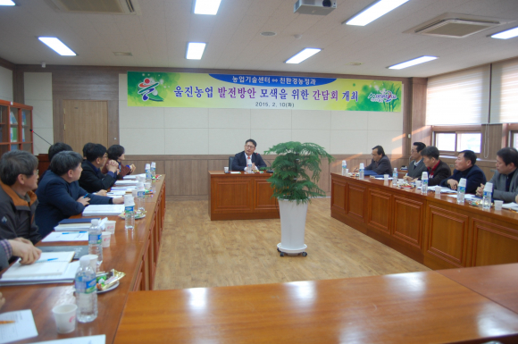 울진군(군수 임광원)에서는 지난 10일 친환경농정과․농업기술센터, ㈜울진유통농업회사 각 팀장 및 과장들이 참석한 가운데 농업기술센터에서 “울진농업 발전방안에 대한 간담회”를 가졌다.