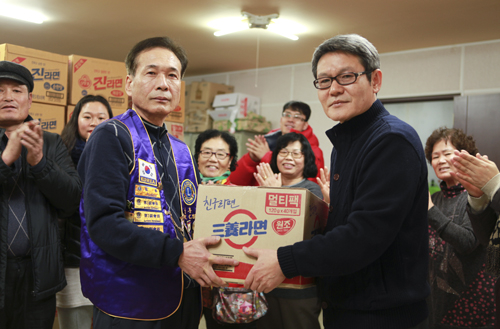 |  | | | ↑↑ 46년의 역사를 가진 경주라이온스클럽(회장 양용철)이 다가오는 설 명절을 맞아 지역 농아인에게 120만 원 상당의 사랑의 라면을 기증하는 온정을 베풀었다. | | ⓒ GBN 경북방송 | | 경주라이온스클럽은 지난해 9월 추석을 앞두고 농아인협회를 찾아 생필품을 전달하는 등 지역사회를 위해 활발한 봉사활동을 펼치고 있는 클럽으로 정평이 나있다.