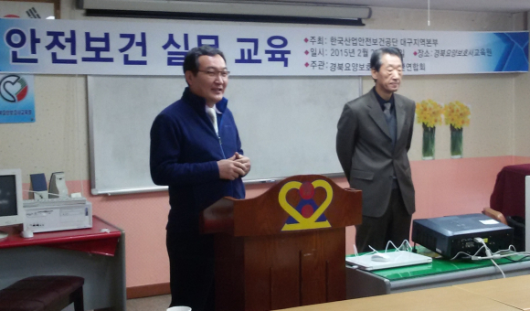 한국산업안전보건공단 대구지역본부(김동춘본부장)가 주최하고 경북요양보호사 교육기관연합회(회장 이재법)가 주관하여 상주지역 어린이집, 아동복지시설, 노인복지시설 대표자 및 관리자를 대상으로 안전보건 실무교육을 2월25일 ~ 26일 양일간에 걸쳐 경북요양보호사 교육원에서 실시했다 .