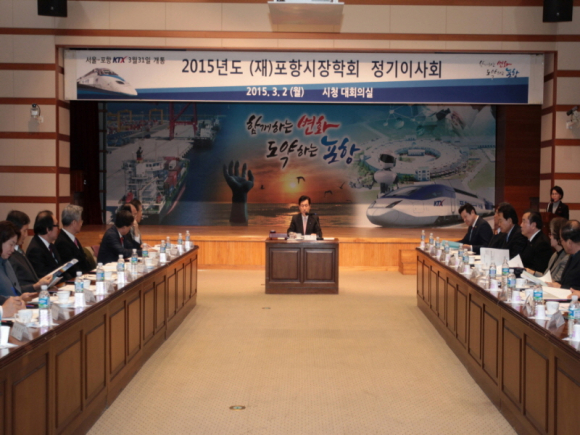 (재)포항시장학회(이사장 이강덕)는 3월 2일 15시, 시청 대회의실에서 이사회 임원 24명이 참석한 가운데 2015년도 정기 이사회를 개최했다.
