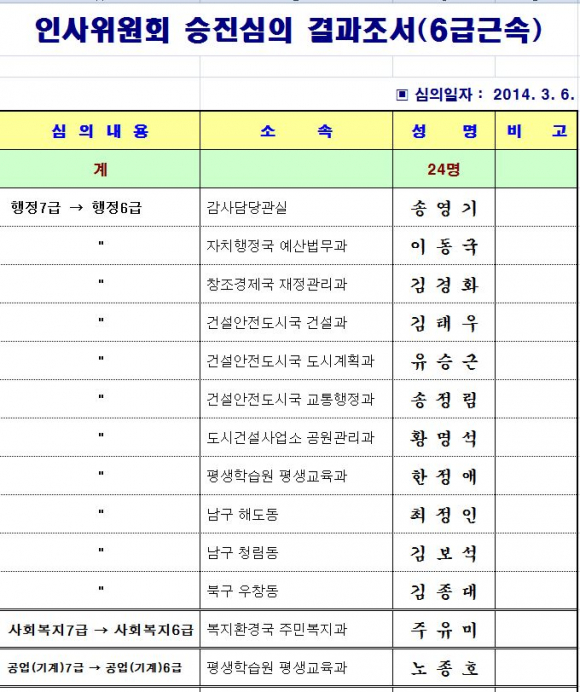 포항시 인사 이동 현황