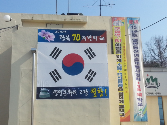 월항면(면장 이근서)은 6일(금) 광복 70주년을 맞아 국권회복을 경축하고 선열들의 숭고한 독립정신을 계승 발전시켜 전 면민의 역량을 하나로 결집하기 위한 대형 태극기를 면 청사에 달았다.