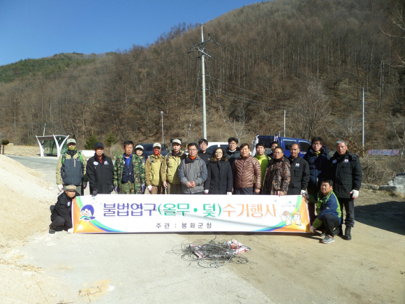 봉화군은 밀렵·밀거래 행위를 사전에 방지하고 야생동물 서식지를 보호하기 위한 불법엽구 수거 행사를 10일 물야면 오전리 생달마을 에서 실시했다.