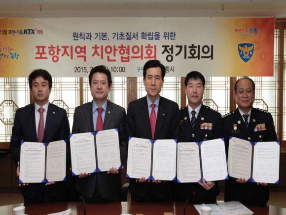 포항지역 치안협의회(위원장 이강덕 포항시장)가 6일 시청 중회의실에서 원칙과 기본, 기초질서 확립을 위한 ‘2015 포항지역 치안협의회 정기회의’를 개최했다.