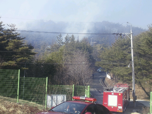 |  | | | ⓒ GBN 경북방송 | | 10일 오후 1시 39분 경주시 강동면 안계리 뒷산에서 산불이 발생해 진화 중이다. 경주소방서 대응구조구급과의 발표를 따르면 해병대 훈련 중 신호탄 불티가 튀어 산불이 난 것으로 추정하고 있다.