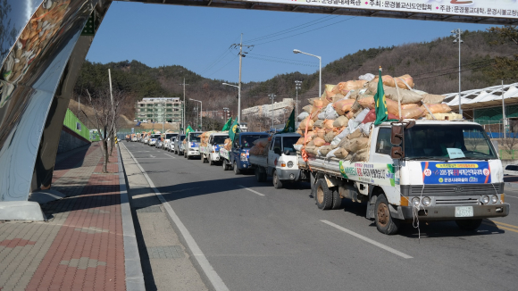 문경시새마을회(회장 권태갑)는 지난 3월 10일 시민운동장 주차장에서 고윤환 문경시장, 이응천 시의장 및 새마을가족 100여명이 참석한 가운데 3R(절약, 재활용, 재사용)운동 연계 깨끗한 문경 만들기 대회 일환으로 헌옷 모으기 경진대회를 개최했다.
