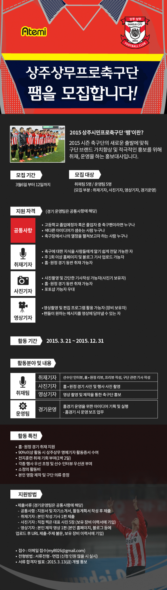 상주상무프로축구단, 홍보대사‘팸’1기 모집!