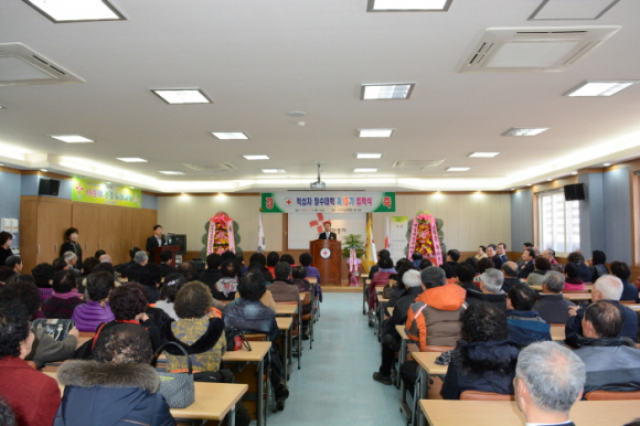 지역 어르신들의 여가선용과 평생교육의 장으로 인기를 구가하고 있는 상주적십자병원 부설 장수대학 입학식이 3월 10일(화) 오전 11시에 병원강당에서 이정백 상주시장, 이동걸 상주시교육지원청장, 박항서 상주적십자병원 홍보대사 및 상주상무프로축구단 감독, 이동섭 적십자장수대학 학장, 유관기관 단체장 30여명이 참석한 가운데 제15기 입학식을 가졌다.