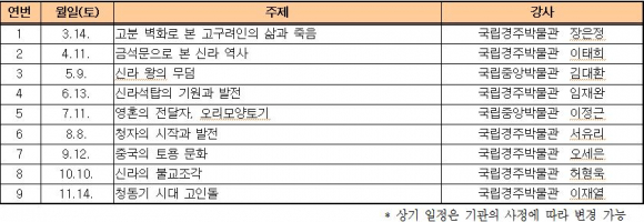 국립경주박물관 2015년『박물관 토요 인문학 강좌』 세부일정 (3월~11월 둘째 주 토요일, 17:30~18:30, 국립경주박물관 세미나실)