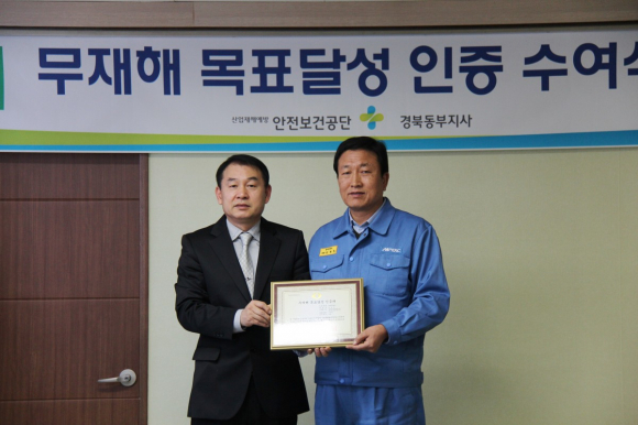 |  | | | ↑↑ 안전보건공단 김철현 경북동부지사장(좌)과 엠피이엔씨 금종호 대표(우)의 기념사진 촬영. | | ⓒ GBN 경북방송 | | 포항제철소 소결분 철광석 임가공 전문 외주파트너사 엠피이엔씨(사장 금종호)는 11일, 무재해 20배수를 달성해, 한국안전보건공단으로부터 인증패와 표창장을 받았다.