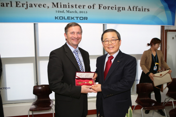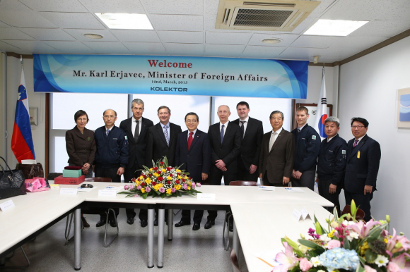 현대기아자동차 초청으로 한국을 방문한 카렐 에로야베치 장관은 현대기아자동차 화성R&D센터을 견학하고, 스토잔 페트릭 콜렉터그룹 회장, 헬레나 드노브섹조르크 주일슬로베니아대사, 슬로베니아 자동차 관련 기업인 등 20여명과 함께 3월 12일 오후5시 구미4공단에 위치한 콜렉터 신영(주)을 방문했다.