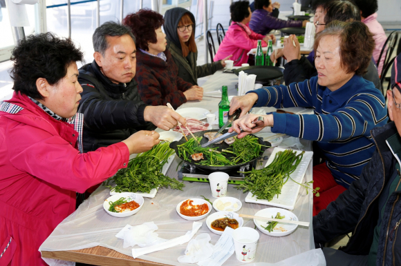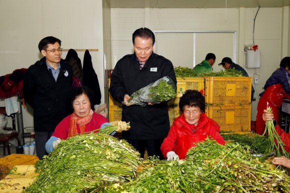 상주시는 12일 사벌면 덕가리에서 이정백 시장을 비롯한 농업관련단체회원, 마을주민등 50여 명이 참여한 가운데 덕가마을영농회에서 생산한 상주청정미나리 첫 출하식을 가졌다.