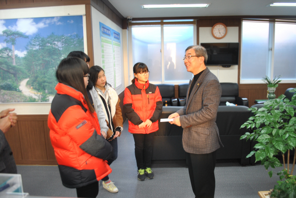 울진군청소년방과후아카데미 청소년들이 지난 3월 13일에 2015년 울진대게 및 붉은대게 축제 퓨전요리 부스운영의 수익금 전액을 울진군장학재단에 전달했다.