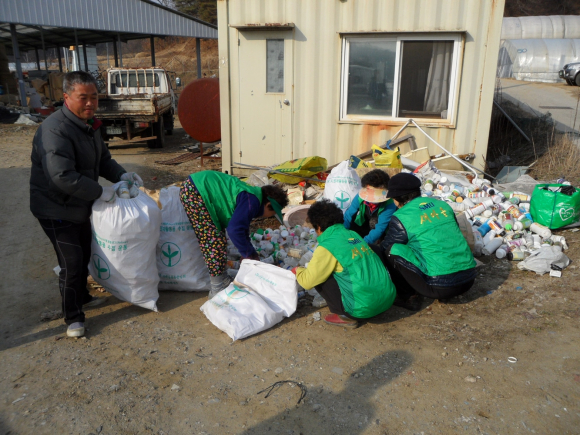 박한태.정정숙 회장은 우리주변에는 재활용 되지 않고 버려지는 자원이 너무 많아 자원도 아끼고 이웃사랑도 실천하기 위해 회원들의 뜻을 모아 재활용품 수거에 적극 참여하게 되었다고 밝혔다. 아울러 농약빈병수거에 애써주시는 회원들께 진심으로 감사드린다고 말하며 마을도 깨끗해지고 따뜻한 마음도 나누는 좋은 성과를 내서 기쁘다고 전했다.