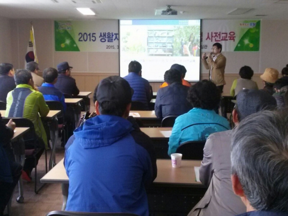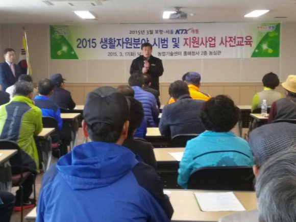 포항시농업기술센터가 17일 농업기술센터 흥해청사 농심관에서 ‘2015년 생활자원분야 시범 및 지원사업’의 성공적인 추진을 위한 사전교육을 실시했다.