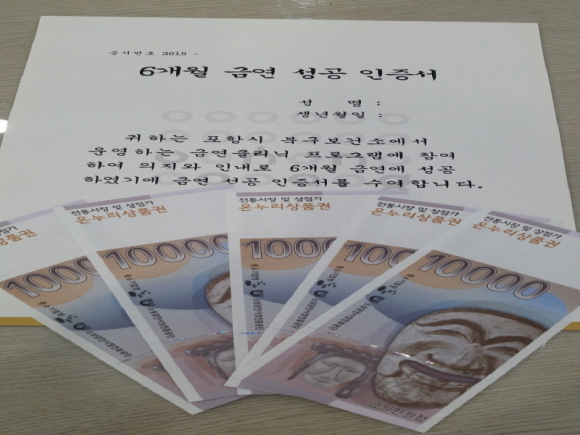 포항시 남·북구보건소가 이달부터 흡연자의 금연 성공 유인을 위해 금연클리닉 등록자 중 6개월 이상 금연에 성공한 시민들에게 온누리 상품권 5만원을 지급한다.