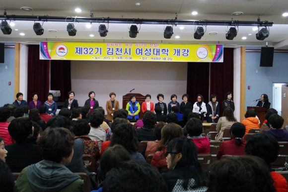 김천시(시장 박보생)에서는 제32기 김천시 여성대학 신입생 120여명이 참석한 가운데 19일 여성회관 3층 강당에서 개강식과 함께 첫 강의를 시작했다.