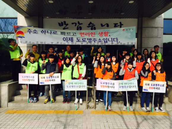 김천시(시장 박보생)는 지난 21일 경상북도 최초로 관내 중·고등학생을 대상으로 도로명주소 인지도 및 사용률이 열악한 청소년 세대를 대상으로 도로명주소 거리홍보 및 환경정비를 통한 봉사체험으로 도로명주소 홍보를 가졌다.