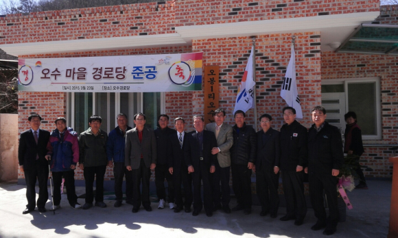 이날 준공식을 가진 ‘오수경로당’은 보조금 5천만원을 포함 5500만원의 공사비를 들여 6개월간 공사를 하여 완공하였고 155㎡의 대지의 56㎡의 건물규모로 거실, 주방, 화장실 등을 갖추었다.