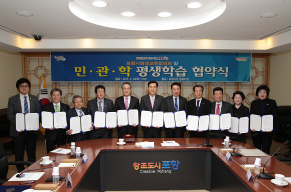 포항시는 24일 시청 중회의실에서 창조적 평생학습도시 조성 및 평생학습 진흥을 위해 포항시 평생교육협의회와 민․관․학 평생교육 업무협약식을 개최했다.