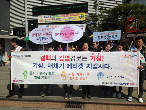 캠페인은 23일 형산교차로를 기점으로 24일에는 죽도시장에서 실시됐으며, 결핵에 대한 사회적 인식을 개선하고 결핵에 대한 올바른 지식전달과 일상생활에서의 결핵예방 수칙을 널리 홍보했다.