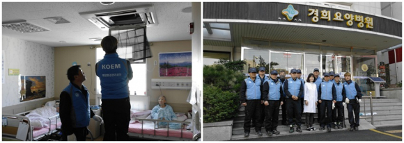 경희요양병원 관계자는 봄을 맞아 냉반방기 정비가 절실했는데 공단의 전문기술자들이 자원하여 깔끔하게 정비하여 몸이 불편한 어른들을 잘 모시게 되었다며 감사의 말씀을 전해 왔다.
