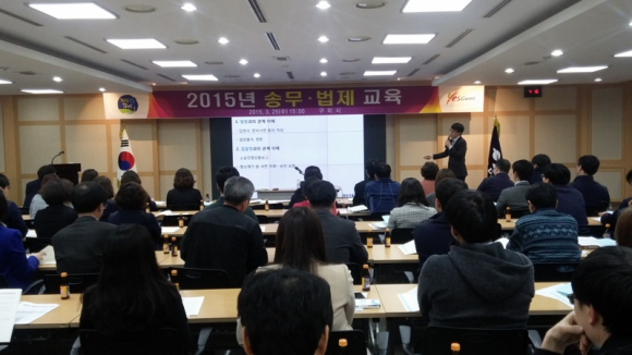 |  | | | ⓒ GBN 경북방송 | | 구미시(시장 남유진)는 25일 15:00 시청 3층 상황실에서 전 부서 소송수행자 및 자치법규 업무 담당자 80여명이 참석한 가운데 2015년 송무·법제 교육을 실시했다.